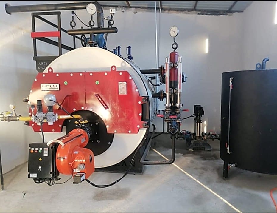 Gaz Yakıtlı Buhar Kazanı, basınçlı kabın ısı ve basınca maruz bırakılarak içindeki suyun kontrollü bir şekilde sıvı fazdan gaz fazına geçme işlemin yapıldığı makinalardır. Suya ısı enerjisi uygulayarak buhar oluşturmak için kullanılan bir cihazdır. Buhar kazanları suyun ısıtılarak buharlaşmasını sağlayan sistemlerdir. Buhar kazanları yakıt tipleri, çalışma basınçlarına göre dizayn edilmektedir. Kullandığımız her şeye şekil veren ve işlemede kullanılan bir basınçlı kaptan oluşan makine türüdür. Dünya genelinde skoç tip olarak adlandırılan kazanlar yüksek işletme verimi ve uzun kullanım ömrü ile tercih sebebi olmaktadır. üç geçişli yanma sistemi sayesinde %91 ile %95 arasında yüksek yanma verimi elde edilmektedir. Üçüncü geçiş borularında bulunan pencere tipi türbülatörler (alev kırıcı) sayesinde yanma verimi artarken yakıt tüketimi azalmaktadır. Konya'da hayata geçirmiş olduğumuz 1.500.000 Kg/H kapasiteli Gaz Yakıtlı Buhar Projesini teslim ettik.